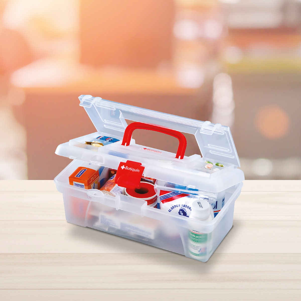 | Características | El Botiquín Plástico de 12 es un recipiente compacto y robusto diseñado para almacenar y organizar suministros médicos y de primeros auxilios. Fabricado con plástico resistente, este botiquín es duradero y capaz de soportar el uso diario en diversos entornos como el hogar, oficina, carro, o durante actividades al aire libre. Su diseño incluye compartimentos internos para mantener los artículos ordenados y de fácil acceso. Además, cuenta con un cierre seguro que evita aperturas accidentales y mantiene su contenido protegido. |