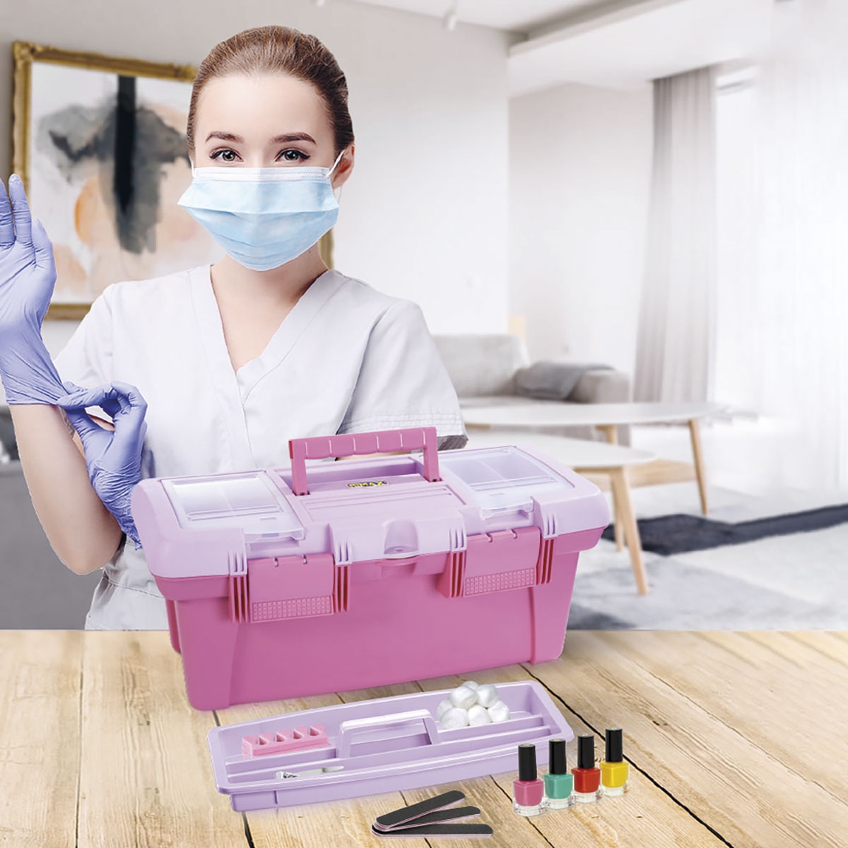 | Características | La Caja Vanity Profesional es la solución perfecta para almacenar y organizar tus productos de belleza con la máxima eficiencia y estilo. Ideal para profesionales y entusiastas del maquillaje, esta caja cuenta con compartimentos y bandejas bien diseñados que facilitan la organización y el acceso a todos tus artículos esenciales. Su construcción robusta y diseño elegante la convierten en una opción práctica y sofisticada para cualquier necesidad de almacenamiento de productos de belleza. |