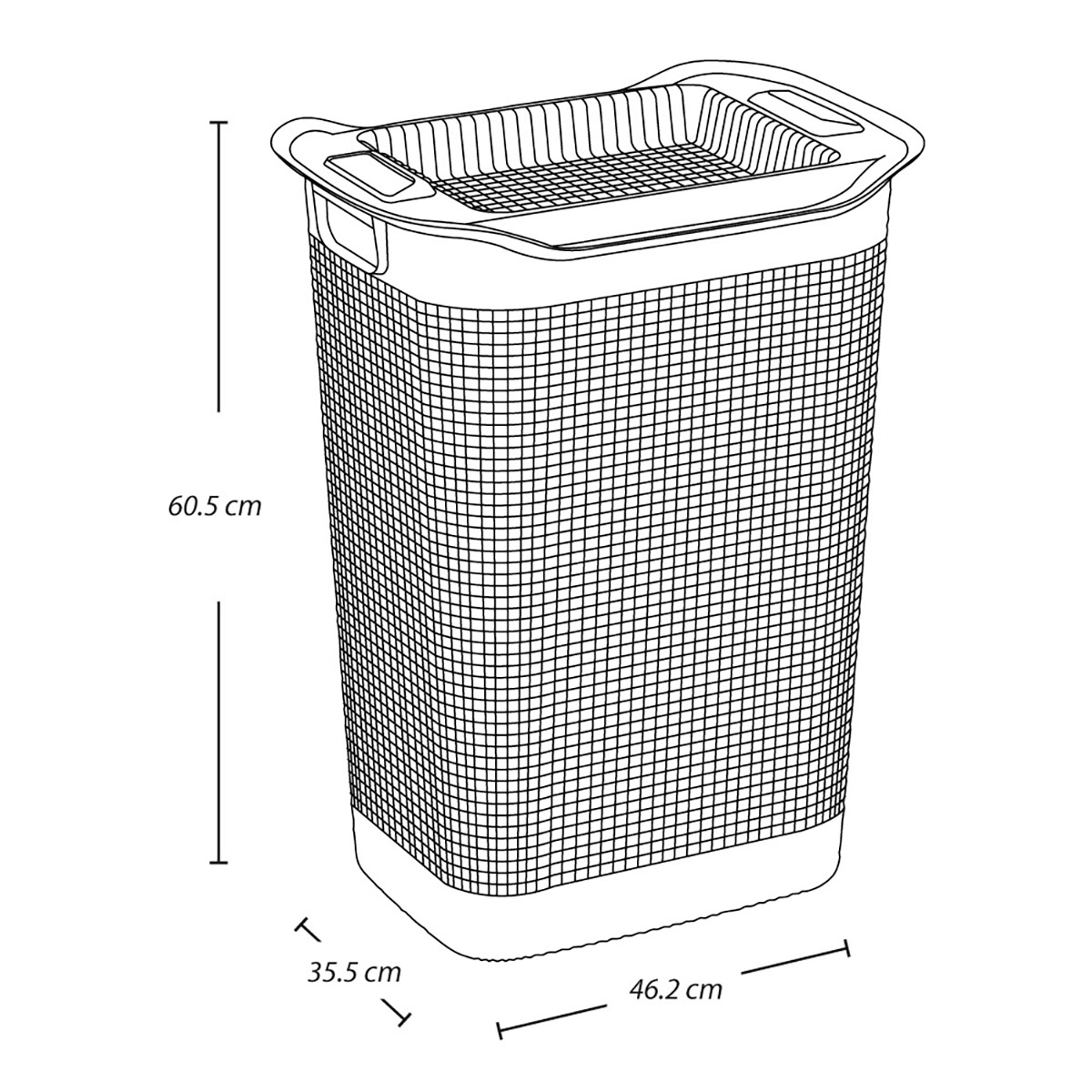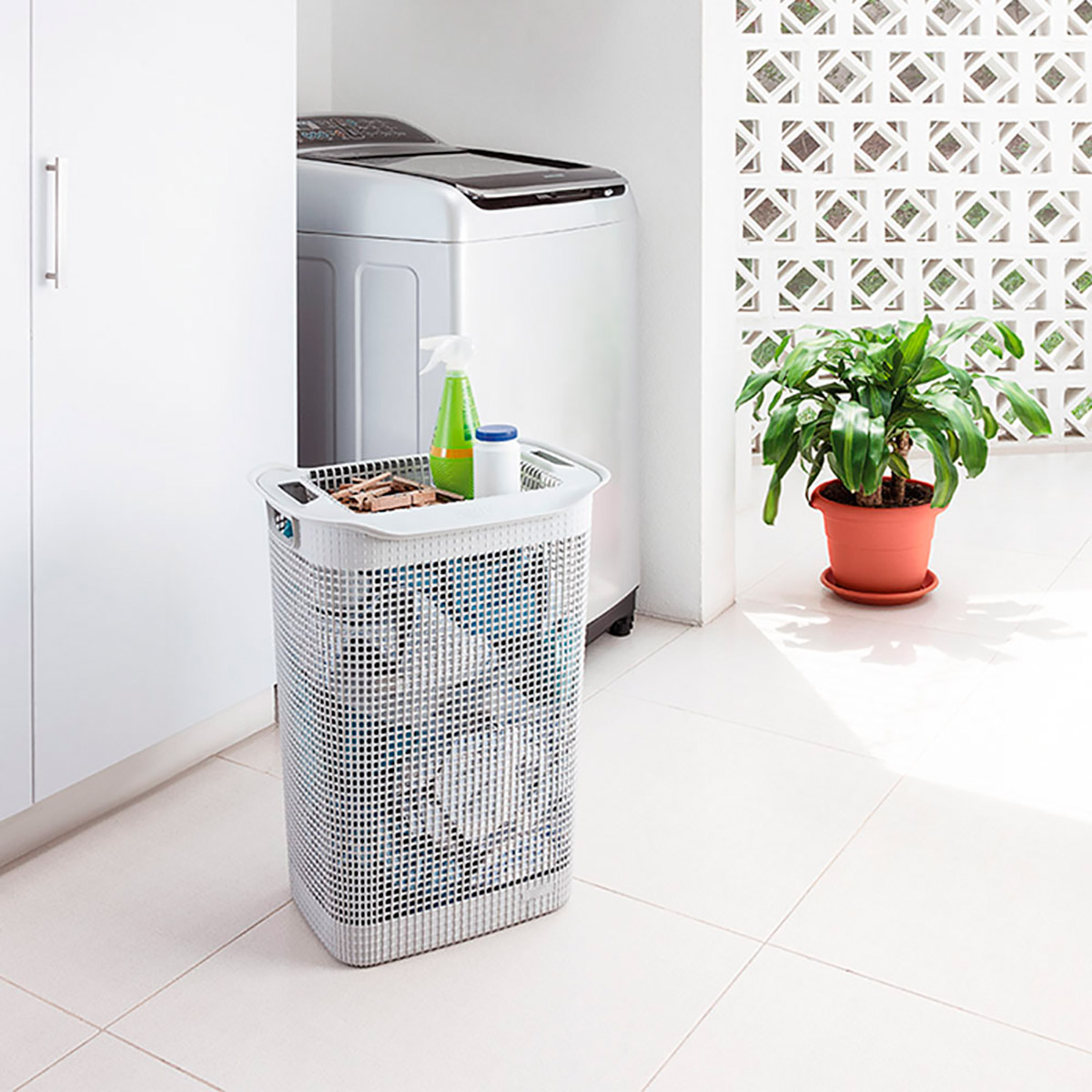 | Características | Cesta para Ropa Linum con tejido imitación lino y textura mate. Tapa con espacio para organizar accesorios o prendas pequeñas. Manijas ergonómicas y capacidad de 51 litros. Los colores de vanguardia que van con el estilo de tu hogar. |