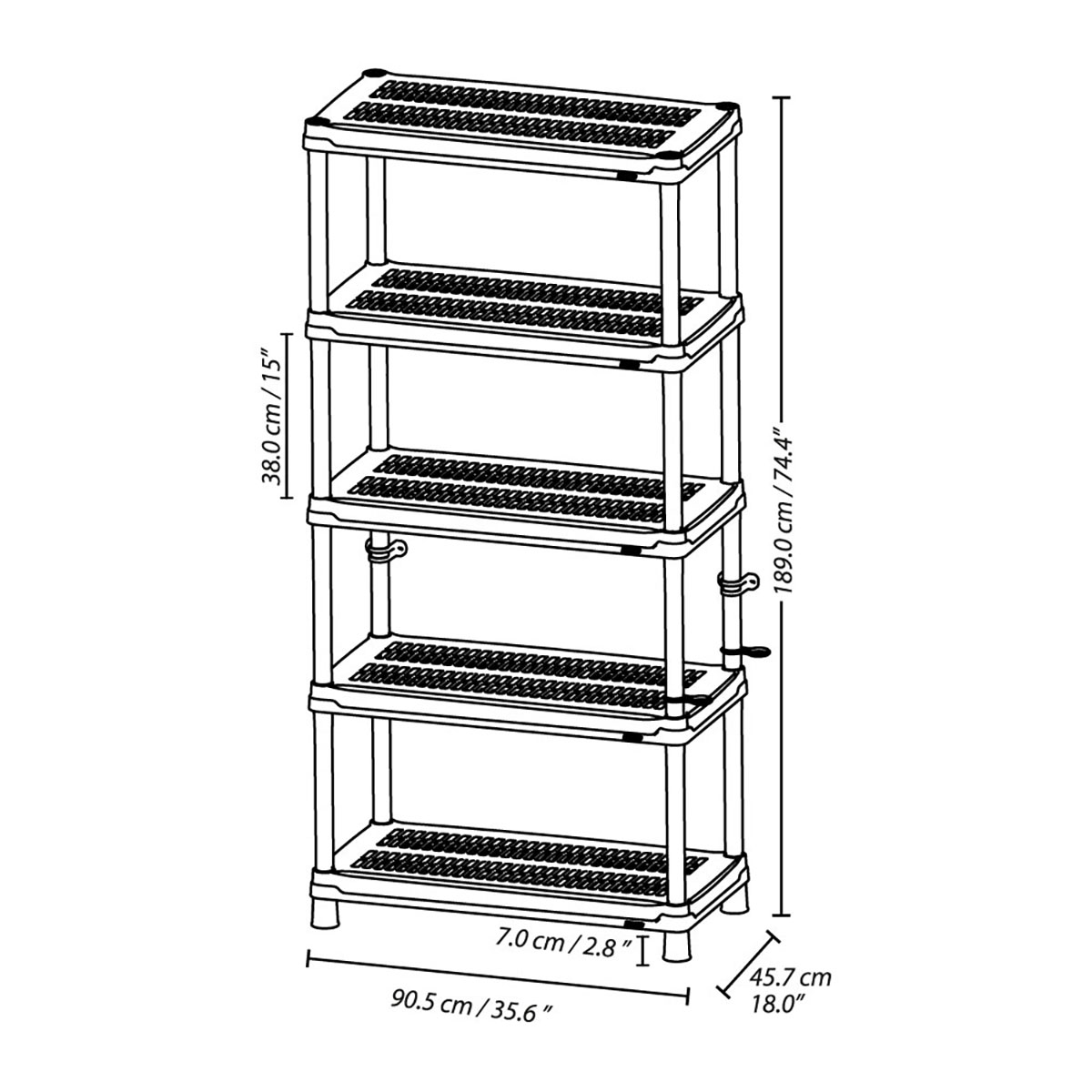 ESTANTERÍA VENTILADA 18"" 5 NIVELES NEGRO/METÁLIZADO"