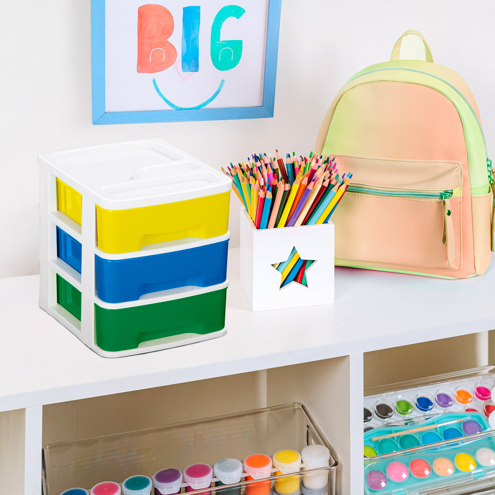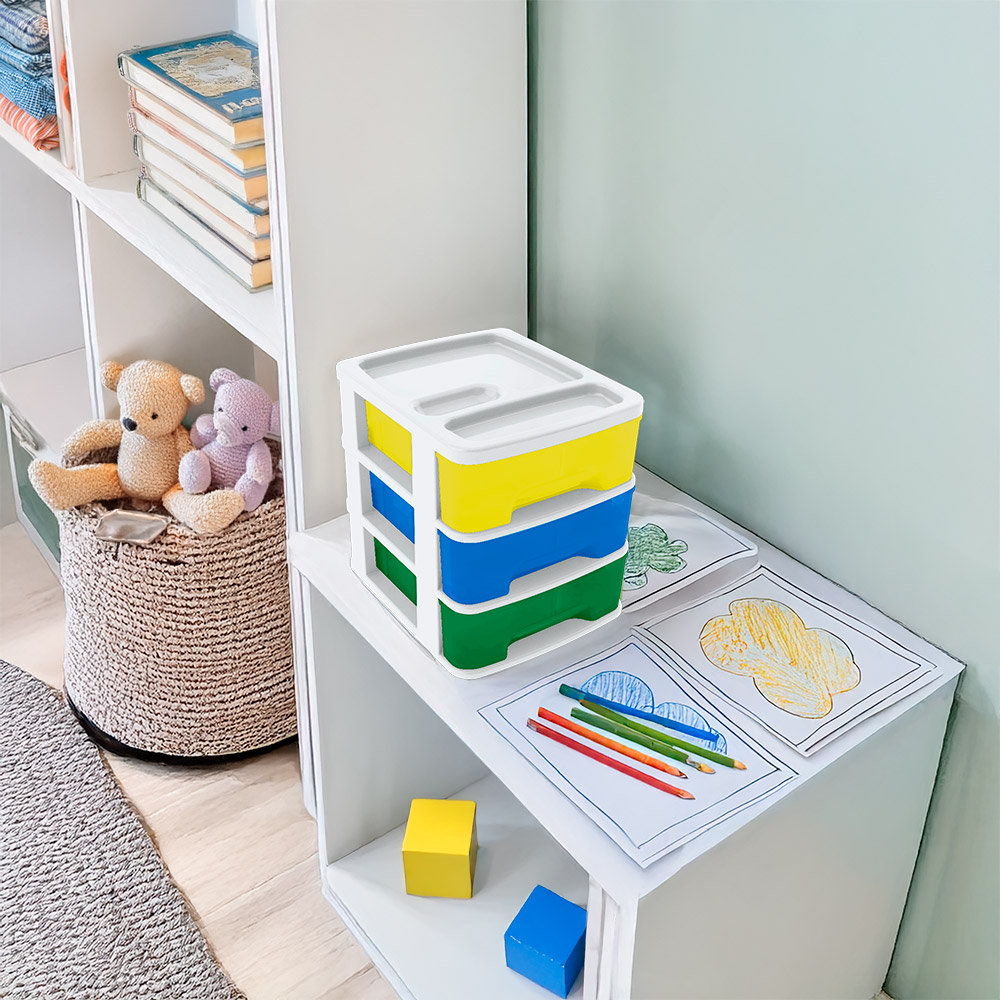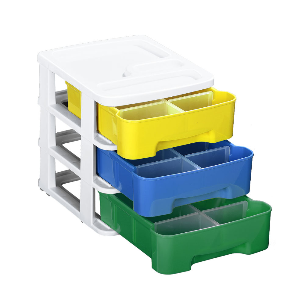 | Características | Gavetero pequeño con organizador, ideal para usarlo para clasificar objetos pequeños. Tiene tres gavetas, las cuales tienen 4 divisiones re movibles que se pueden ajustar de acuerdo a sus requerimientos. Tapa organizadora con compartimentos para clasificar. Fácil de limpiar. Úsalo en el baño,cocina, cuarto de ropas, estudio, habitaciones, closets y garaje |