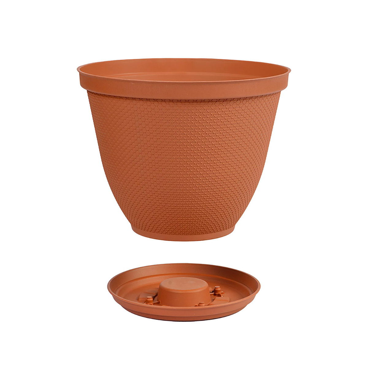 | Características | La Matera redonda Rafia 25 cm con Plato es ideal para resaltar tus plantas con un estilo natural y elegante. Fabricada con materiales duraderos y diseñada para imitar la textura de la rafia, esta matera aporta un toque estético a cualquier ambiente. Incluye un plato a juego que ayuda a evitar derrames, manteniendo tus superficies limpias. Perfecta para uso en interiores y exteriores. |