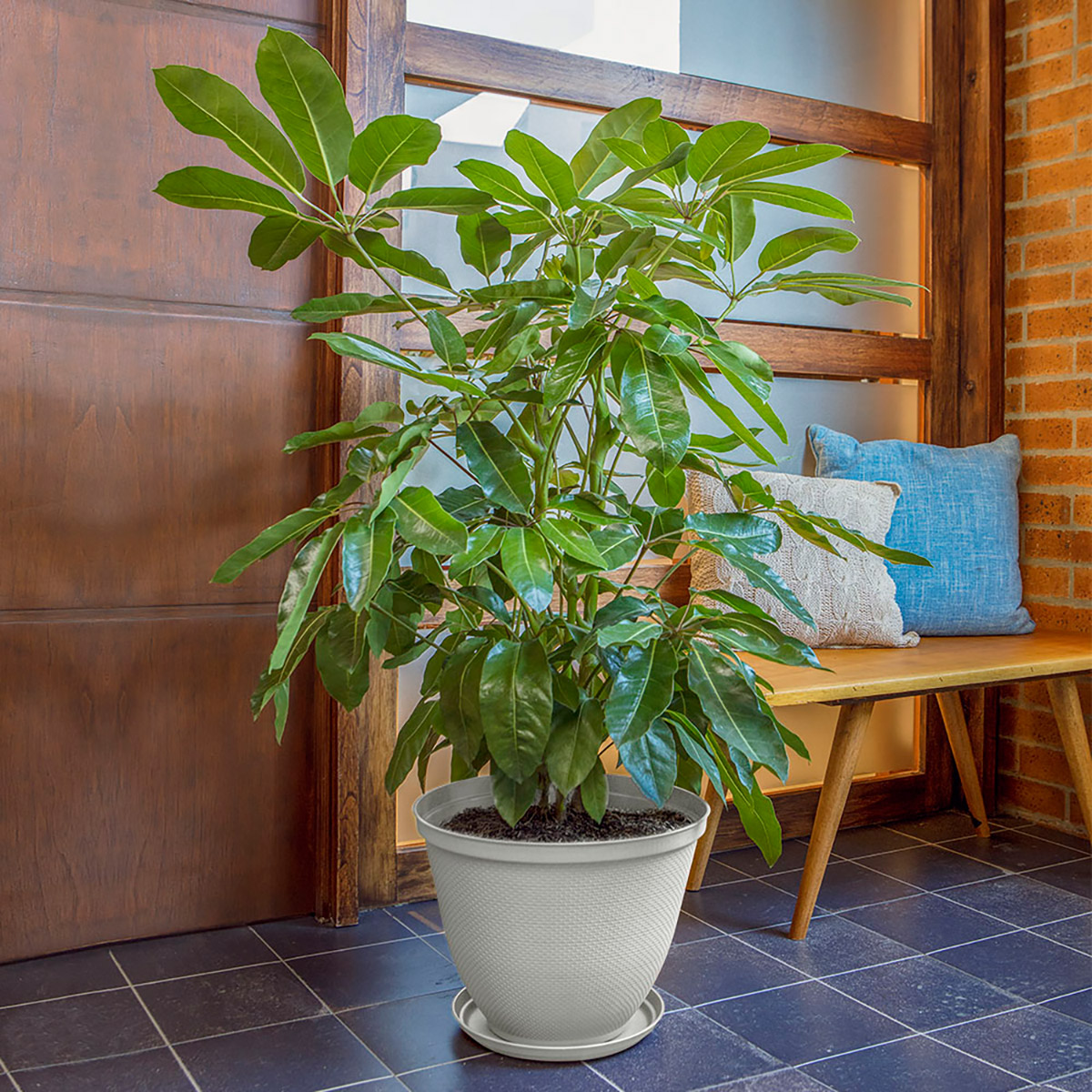| Características | La Matera redonda Rafia 35 cm con Plato es ideal para resaltar tus plantas con un estilo natural y elegante. Fabricada con materiales duraderos y diseñada para imitar la textura de la rafia, esta matera aporta un toque estético a cualquier ambiente. Incluye un plato a juego que ayuda a evitar derrames, manteniendo tus superficies limpias. Perfecta para uso en interiores y exteriores. |