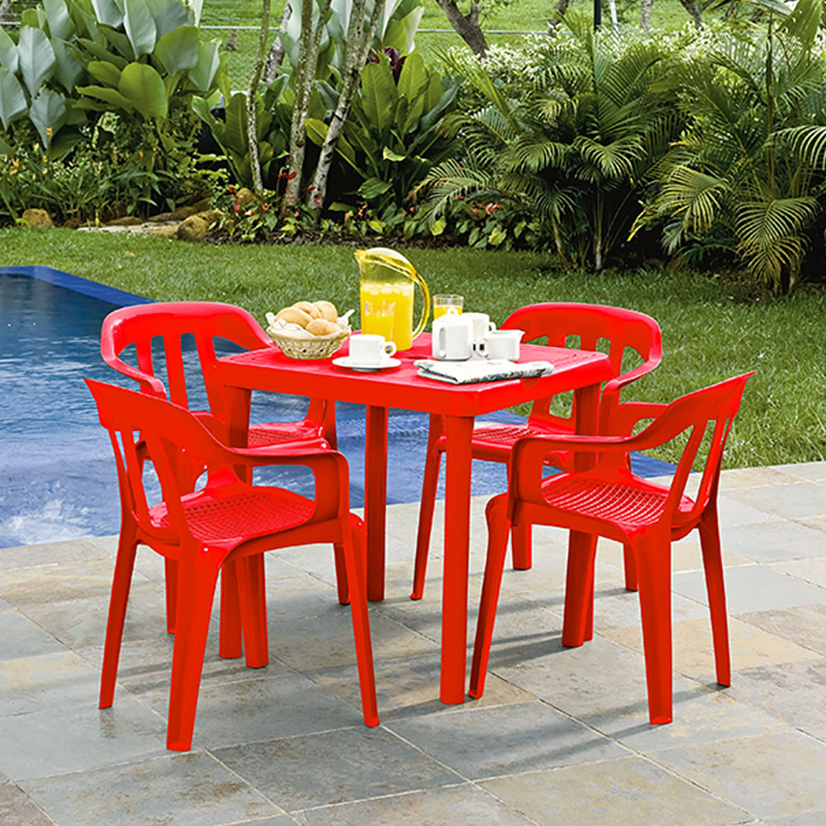 | Características | Mesa Caribe 4 puestos con antideslizantes y tapon para uso de parasol, cuenta con tacones niveladores |