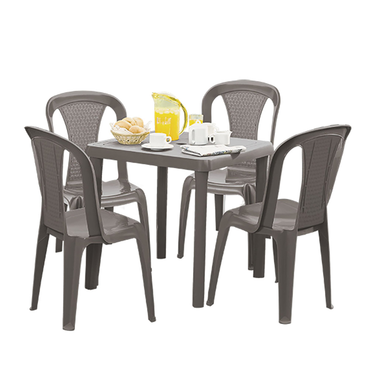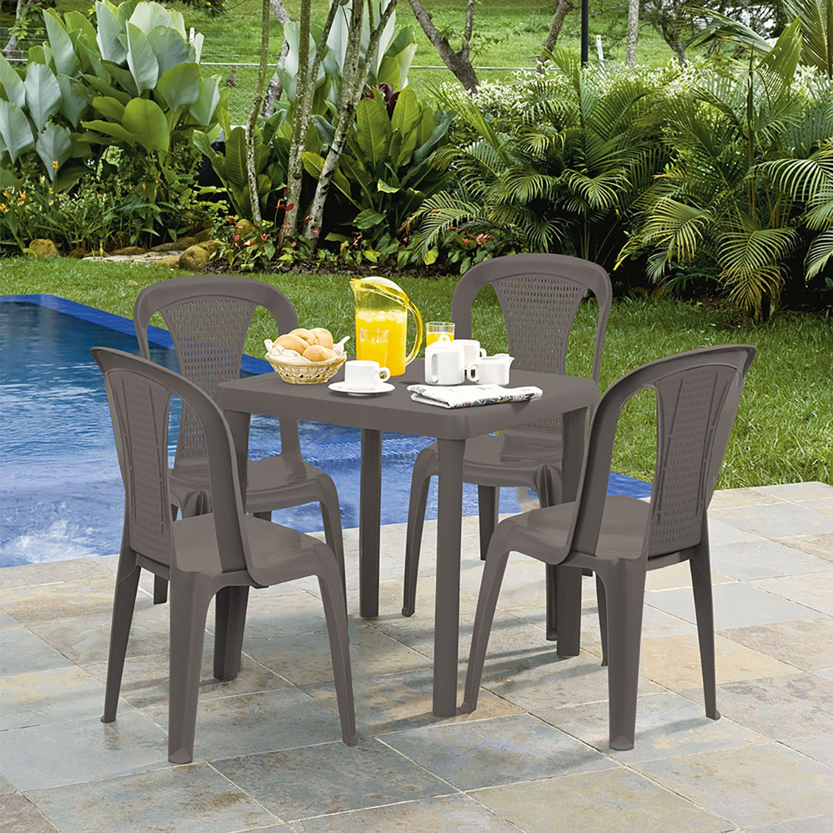 | Características | Mesa Caribe 4 puestos con antideslizantes y tapon para uso de parasol, cuenta con tacones niveladores |
