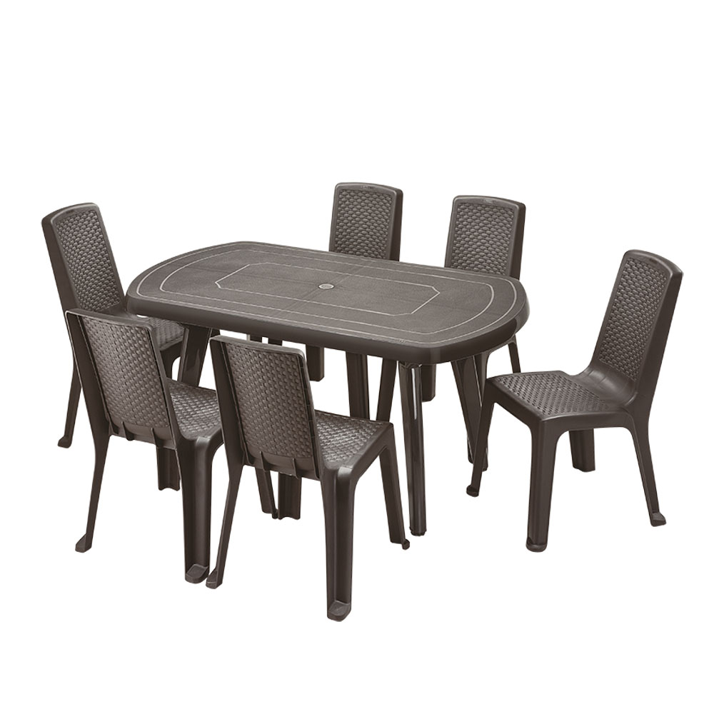| Características | Mesa de tamaño familiar ideal para 6 puestos, larga, resistente, fácil de armar y de limpiar. Con filtro UV para uso en exteriores e interiores. Úsala con 6 sillas como comedor principal o auxiliar. Un producto diferenciado y estable. Diseño clásico que combina con los diversos estilos del hogar. |