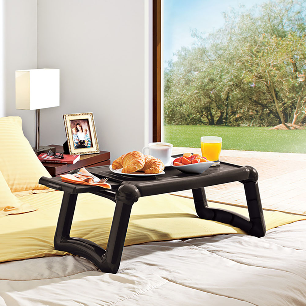 | Características | La mesa personal portátil es la opción que facilita el uso de dispositivos móviles en las habitaciones para tomar el desayuno y estudiar. Al utilizar la mesa personal portátil aísla el calor generado por los aparatos electrónicos, proporciona una mejor postura al escribir y leer, brindando comodidad y seguridad. Liviana y fuerte ya que se pliega y se guarda, es ligera, tiene una bandeja adicional para ampliar la superficie de la mesa, tiene topes de seguridad en las patas para brindar estabilidad. |