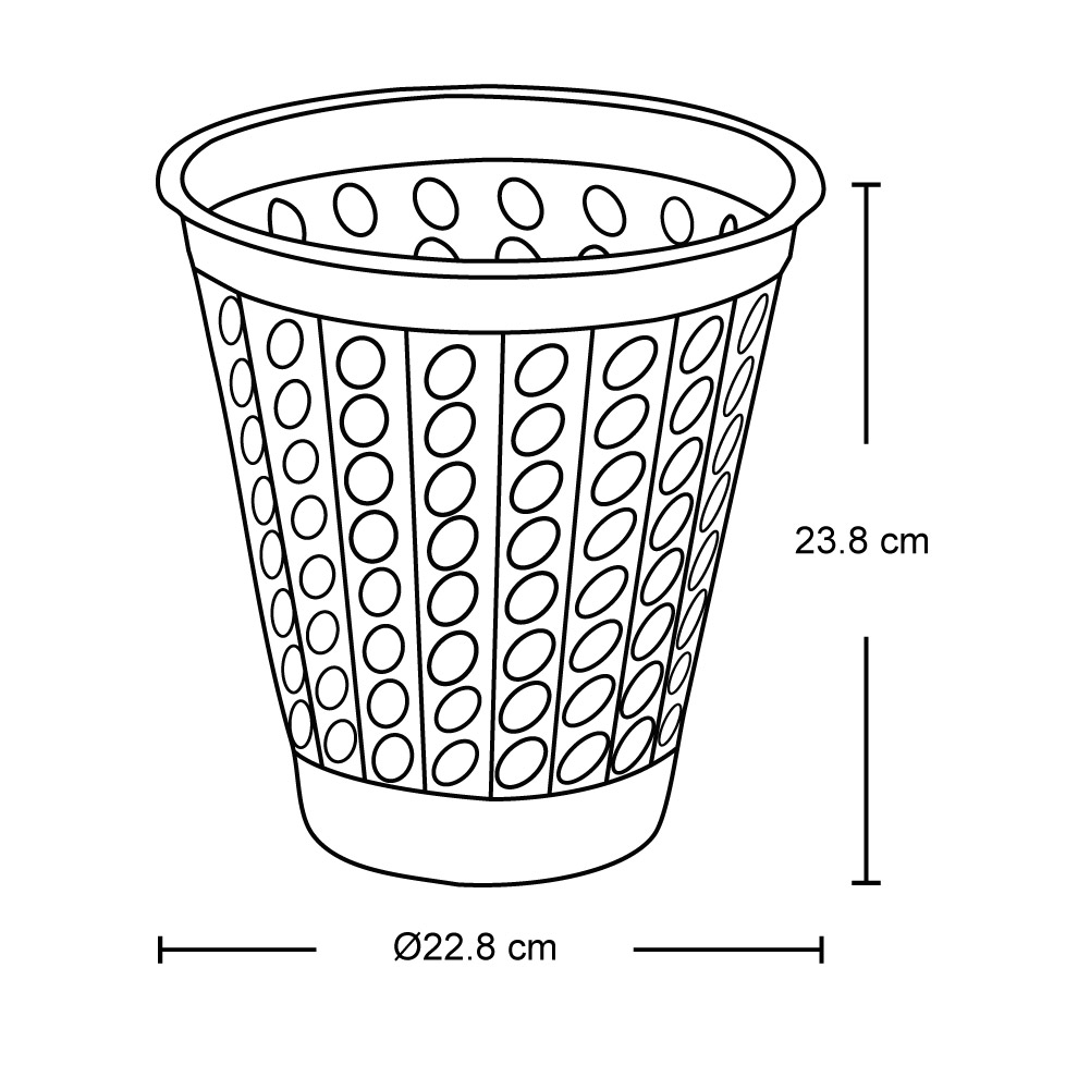 | Características | Papelera de 6 litros ideal para cuartos, oficinas, cocina, entre otros. Con perforaciones en el diseño lo cual permite que sea armonico con los demas productos del hogar |