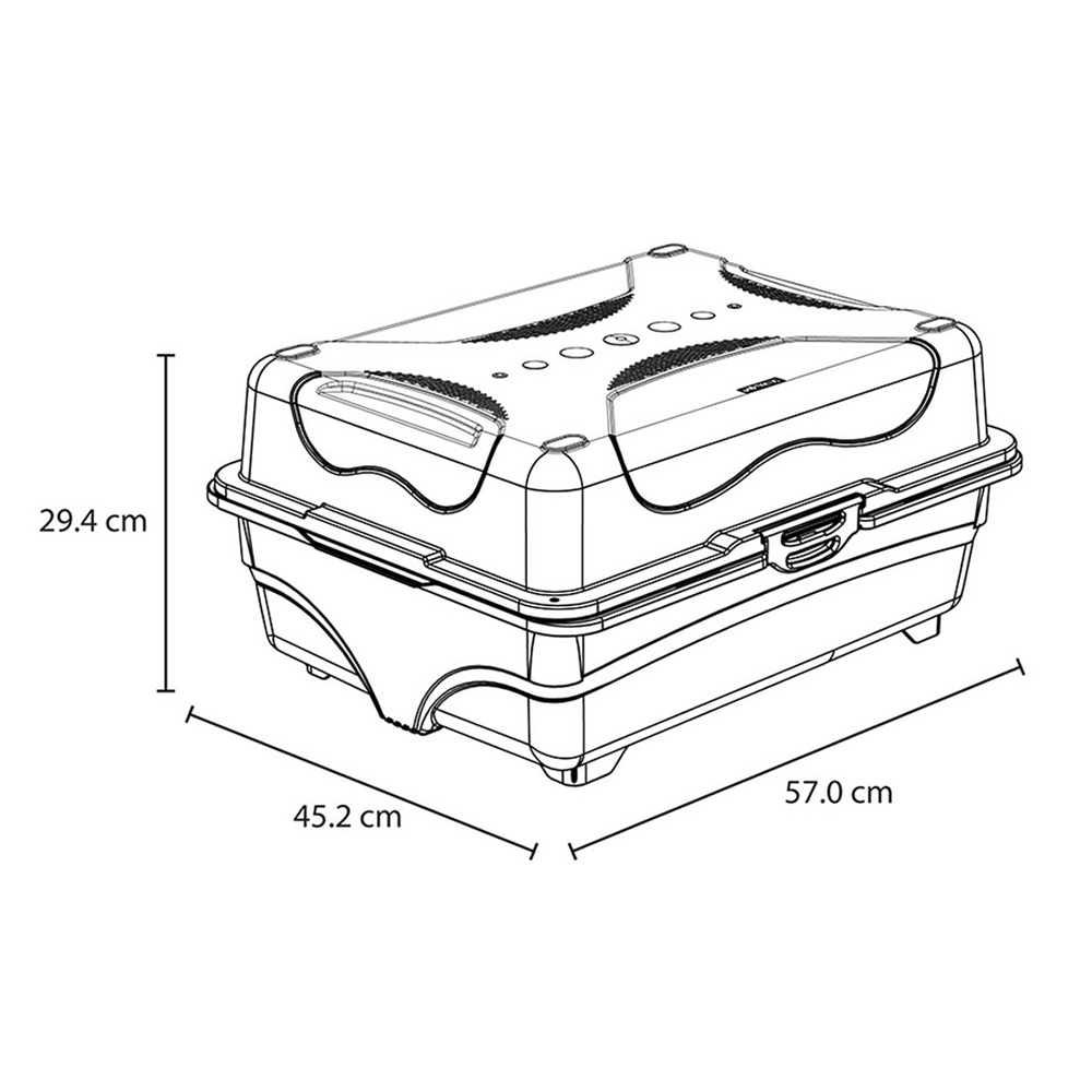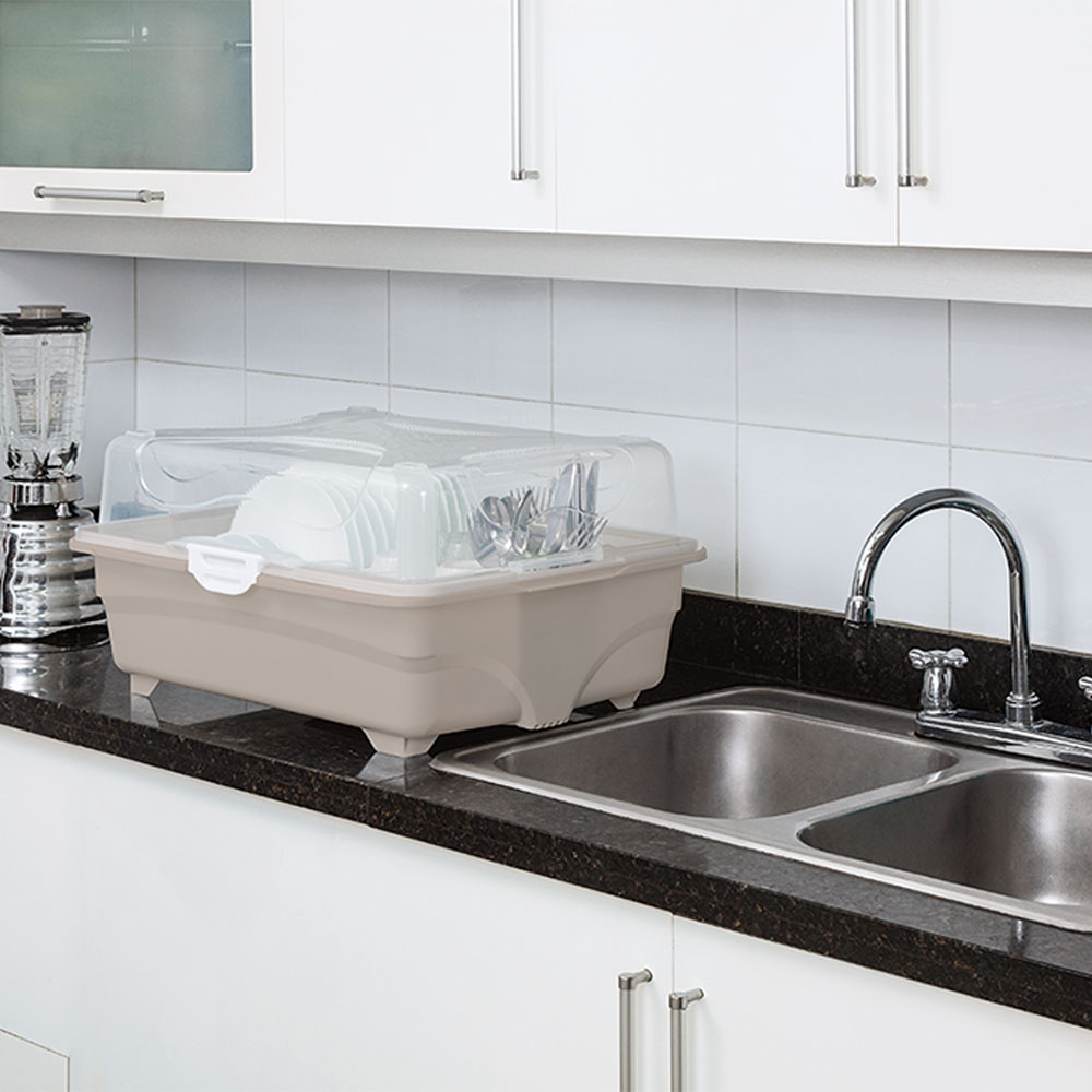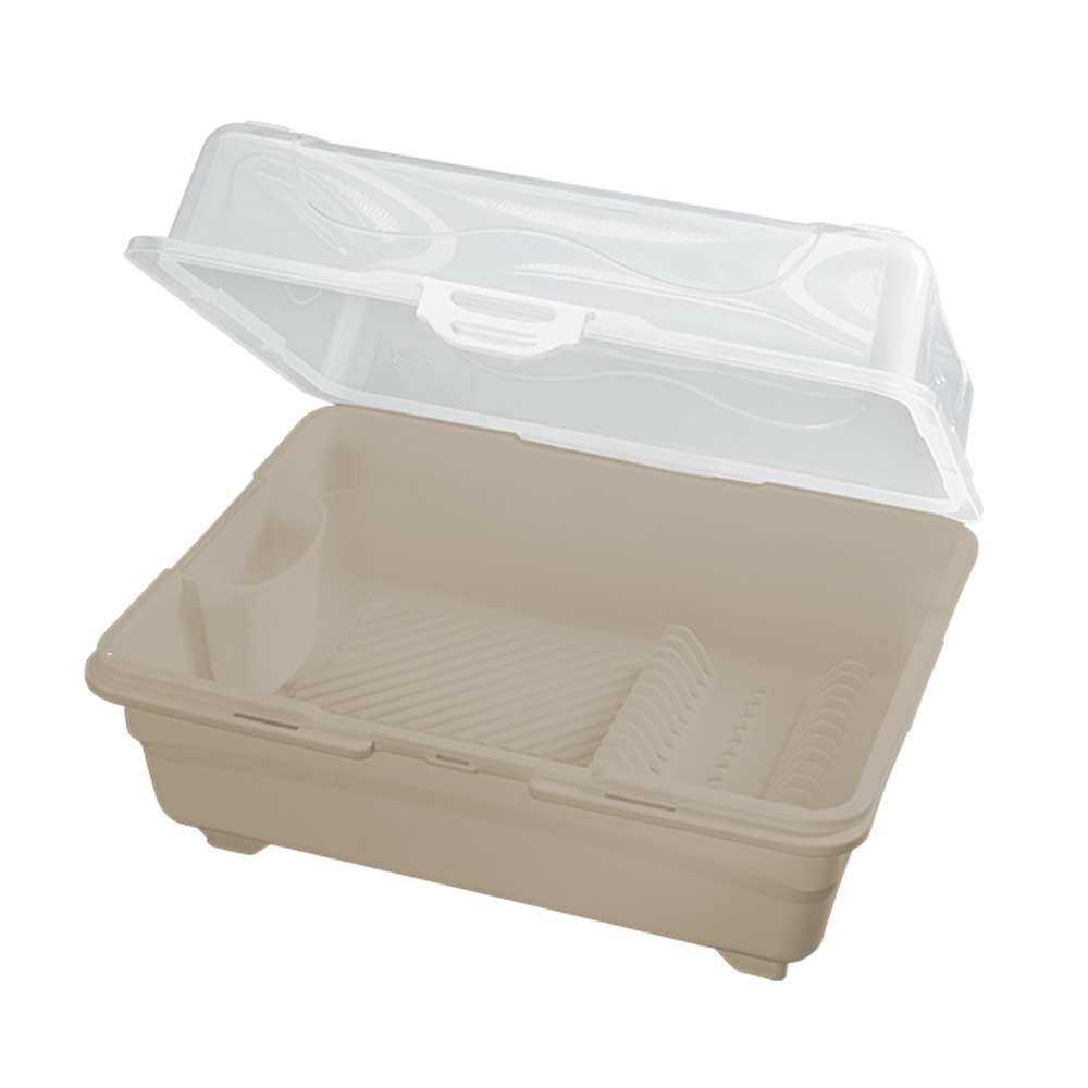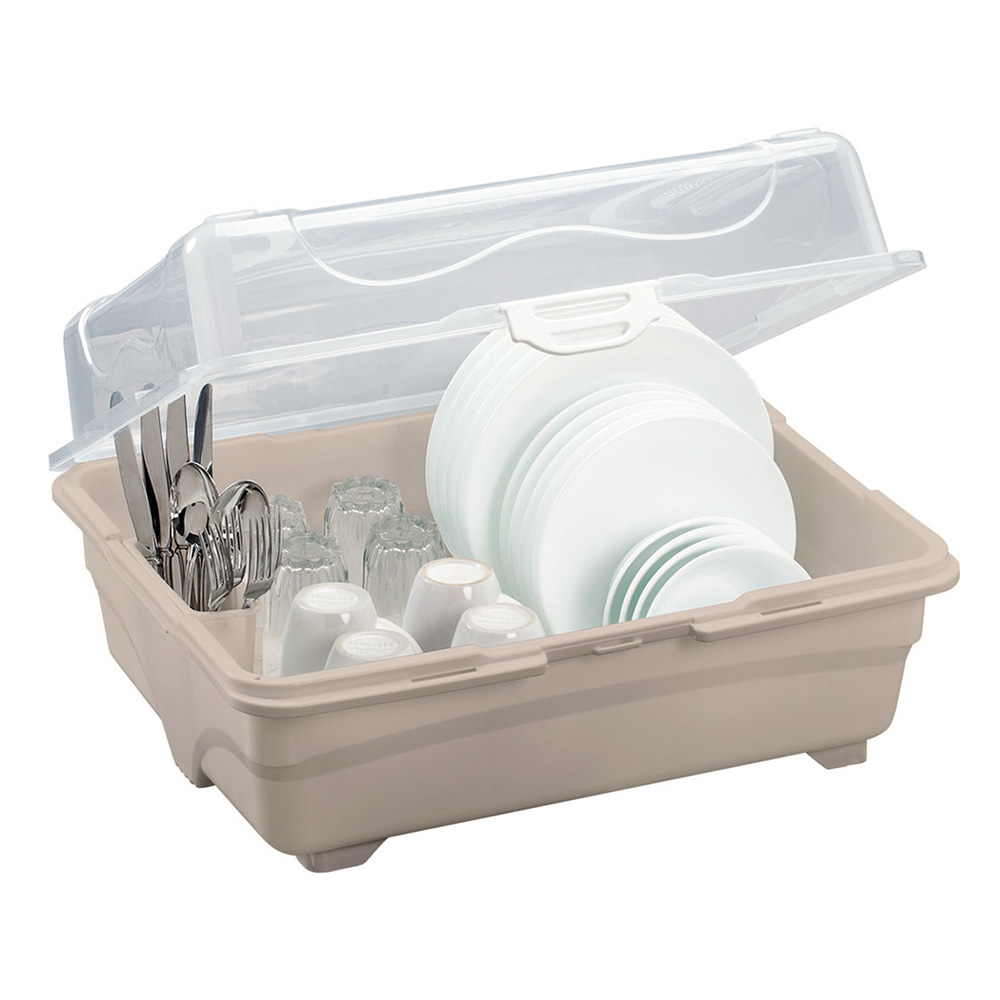 | Características | Para escurrir tus platos, cubiertos y vasos; y tenerlos almacenados, en perfecto orden. Tiene dos usos; Escurre los platos y utensilios de cocina, después de lavarlos almacena y protege tu vajilla de contacto con insectos. Cuenta con pequeñas perforaciones en la tapa para ventilación del interior. Tiene manijas que aseguran el contenedor. Tapa abatible que aporta mayor seguridad y practicidad al momento de usarlo en la cocina; así como estabilidad al momento de mover el producto con todo y vajilla en su interior. |