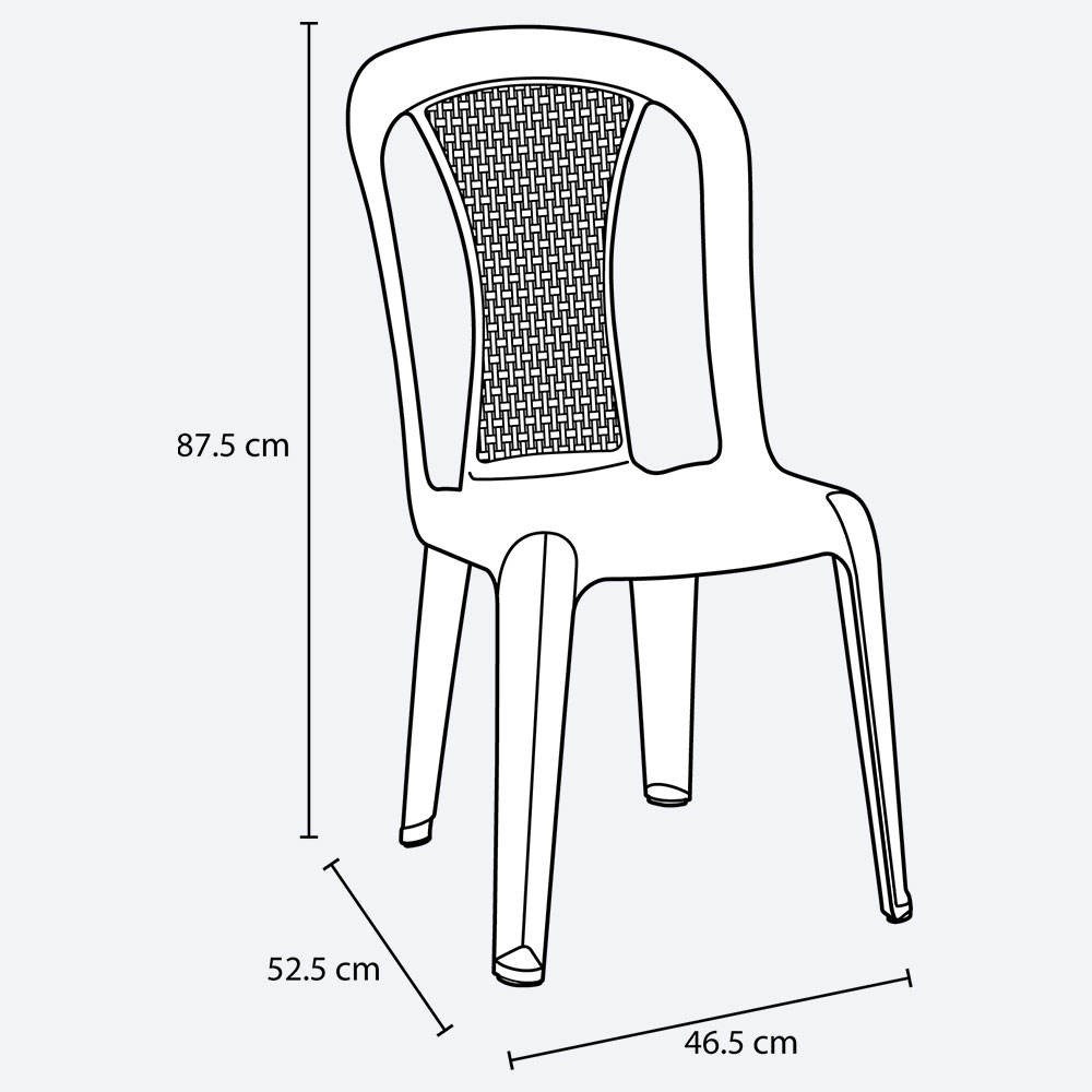 | Características | Silla con espaldar tejido, que le da un toque de elegancia. Es cómoda, estable y ergonómica. Ideal para espacios empresariales. Optimiza el espacio en espacios como conciertos, banquetes, iglesias y espacios de dotación en general.No requiere ser vestida por el adorno en el espladar. |
