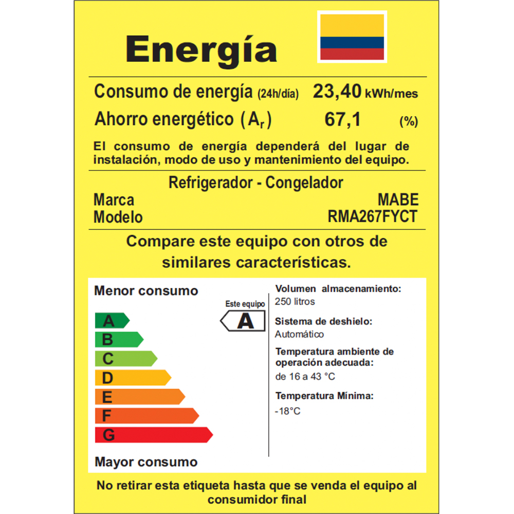 | Nombre | Nevera No Frost 247 L Brutos Grafito Mabe RMA247FJCG |