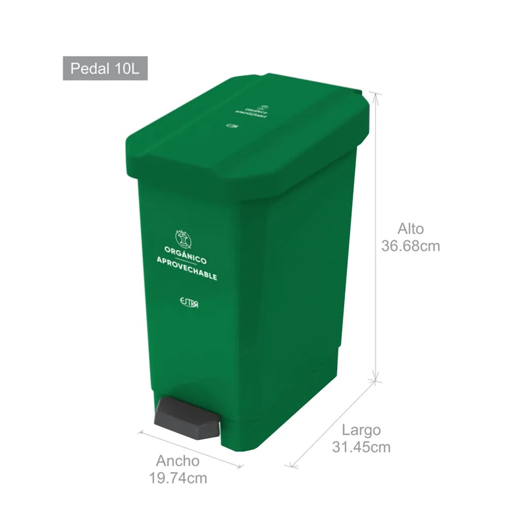 Caneca-Papelera Estrabins Pedal 10L\Verde-Organico Aprovechable\\Emp 4