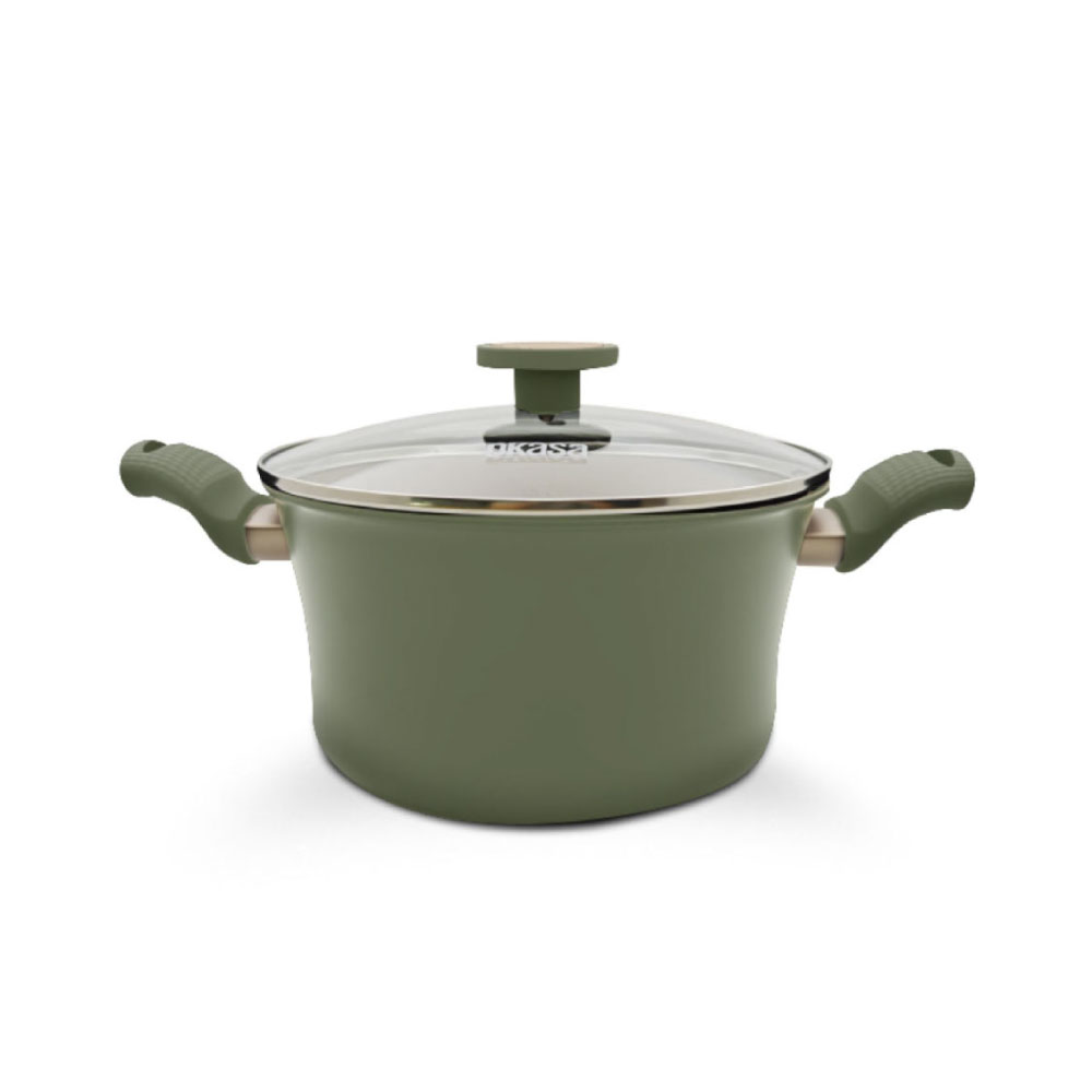 | Características | Apto para contacto con alimentos Base difusora de calor Tapas de vidrio templado Mango pomo y asas suaves al tacto Pintura exterior mate Antiahderente color texturizado Asas y mango remachados Calibre: Sarten: 25 mm Calibre: Olla y perol: 28 mm |