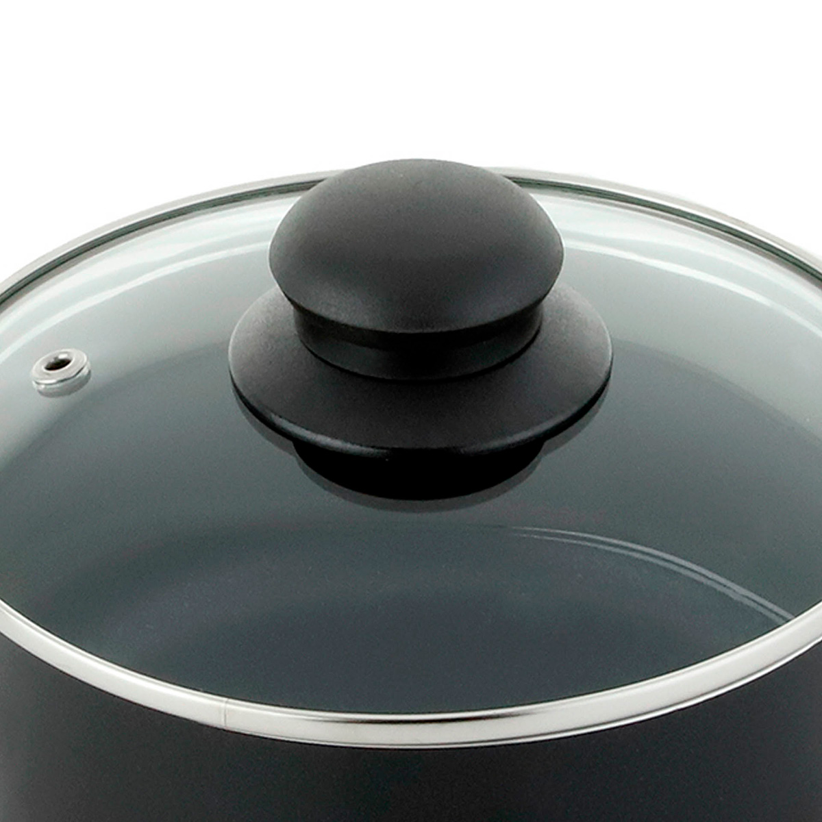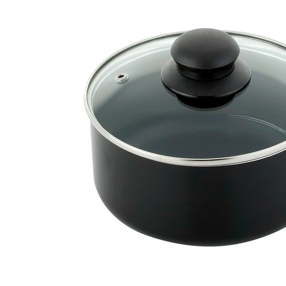 Perol Simplicity Negro Antiadherente Con Tapa De Vidrio 14cm