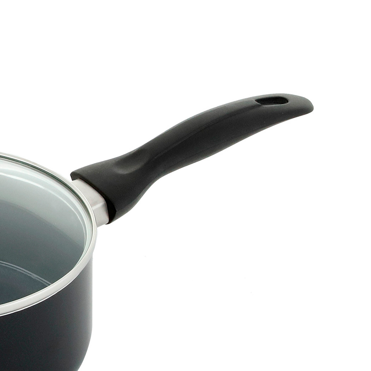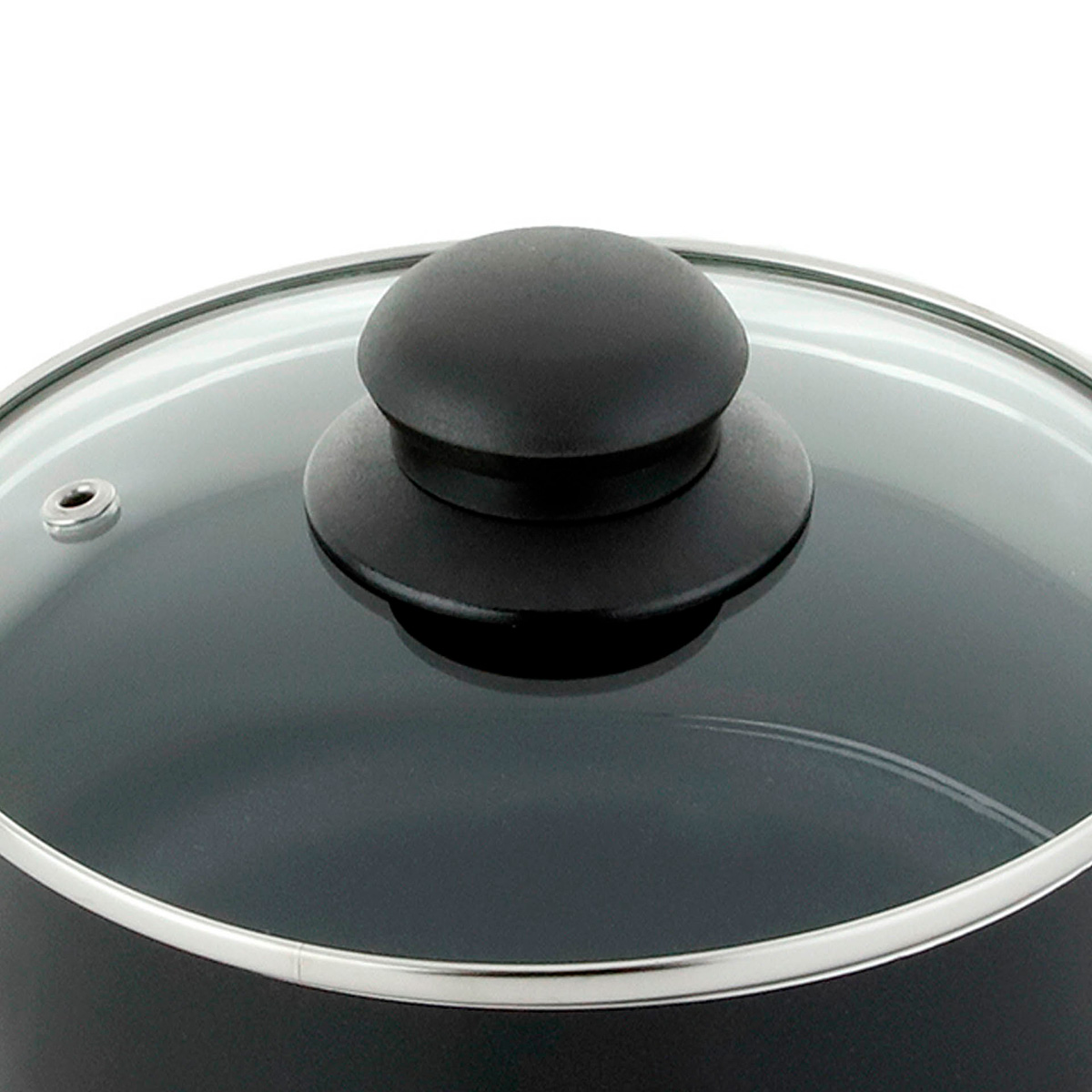 Perol Simplicity Negro Antiadherente Con Tapa De Vidrio 16cm