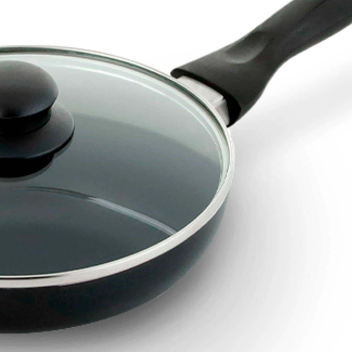 | Características | Sarten de 28 cm Tapa de vidrio templado con pomo ergonomico Mango en silicona |