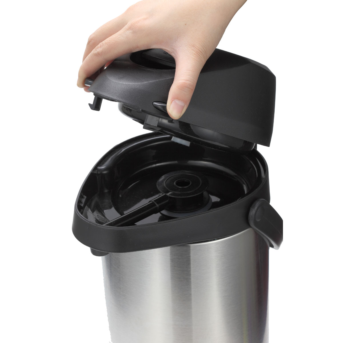 | Características | Apto para contacto con alimentos Mantiene las bebidas calientes o frias Ampolla de vidrio Tapa sistema bomba de palanca Manija para transportar Tapa con seguro |