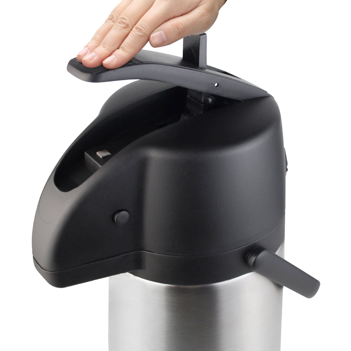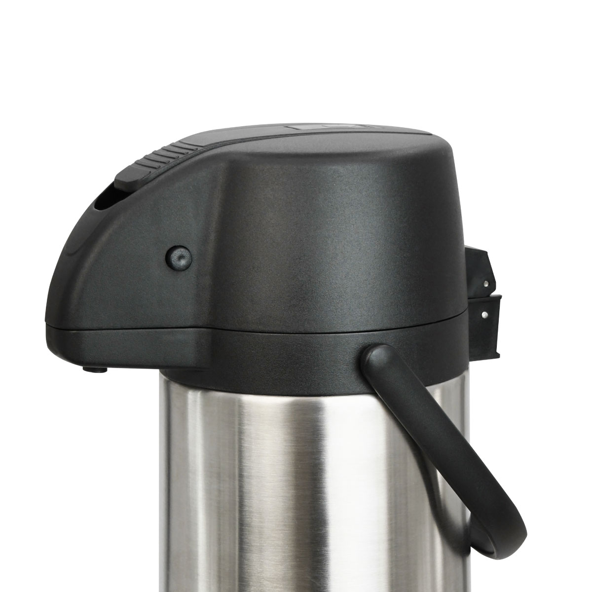 | Características | Apto para contacto con alimentos Mantiene las bebidas calientes o frias Ampolla en acero inoxidable Tapa sistema bomba de palanca Manija para transportar Tapa con seguro |