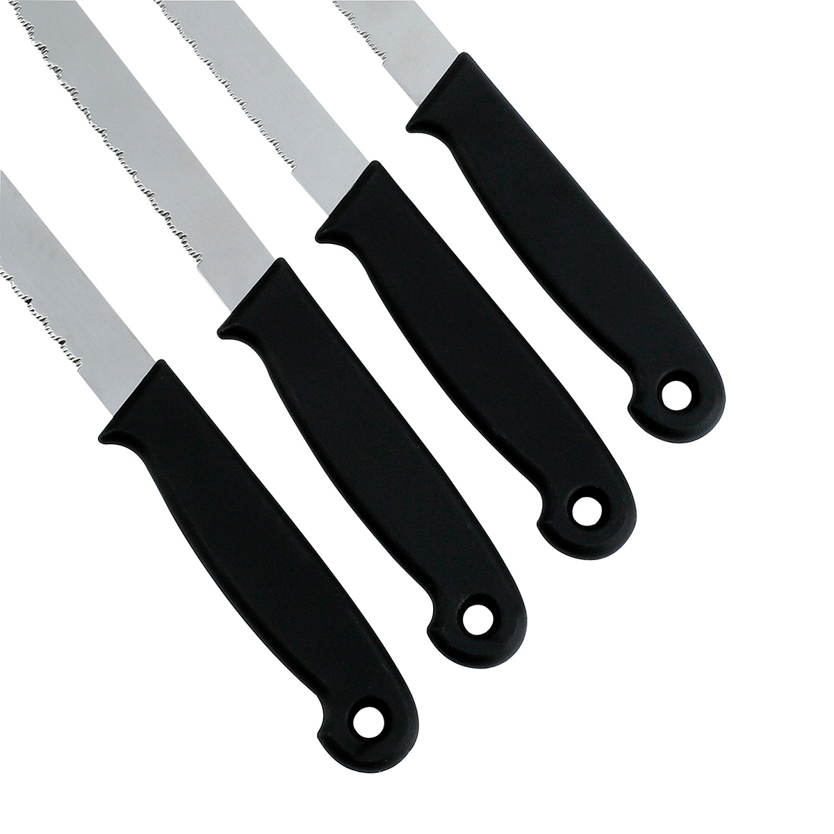Set X 4 Cuchillos En Acero Inox Mango Plástico Multiusos