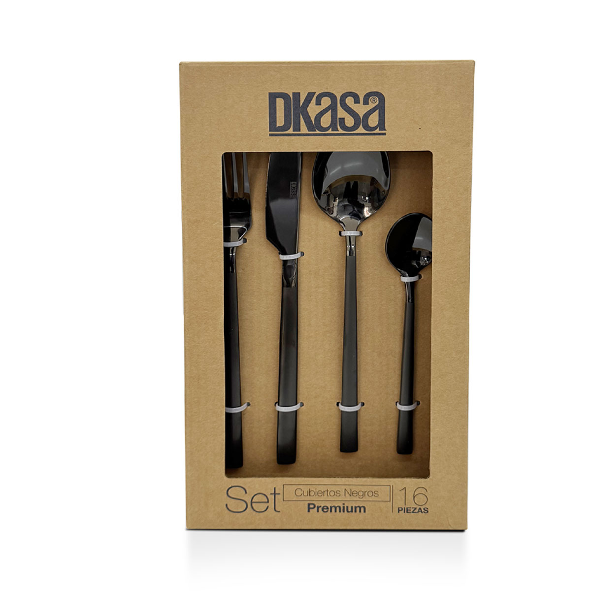SET DE CUBIERTOS PREMIUM ACERO INOXIDABLE NEGROS 16 PIEZAS