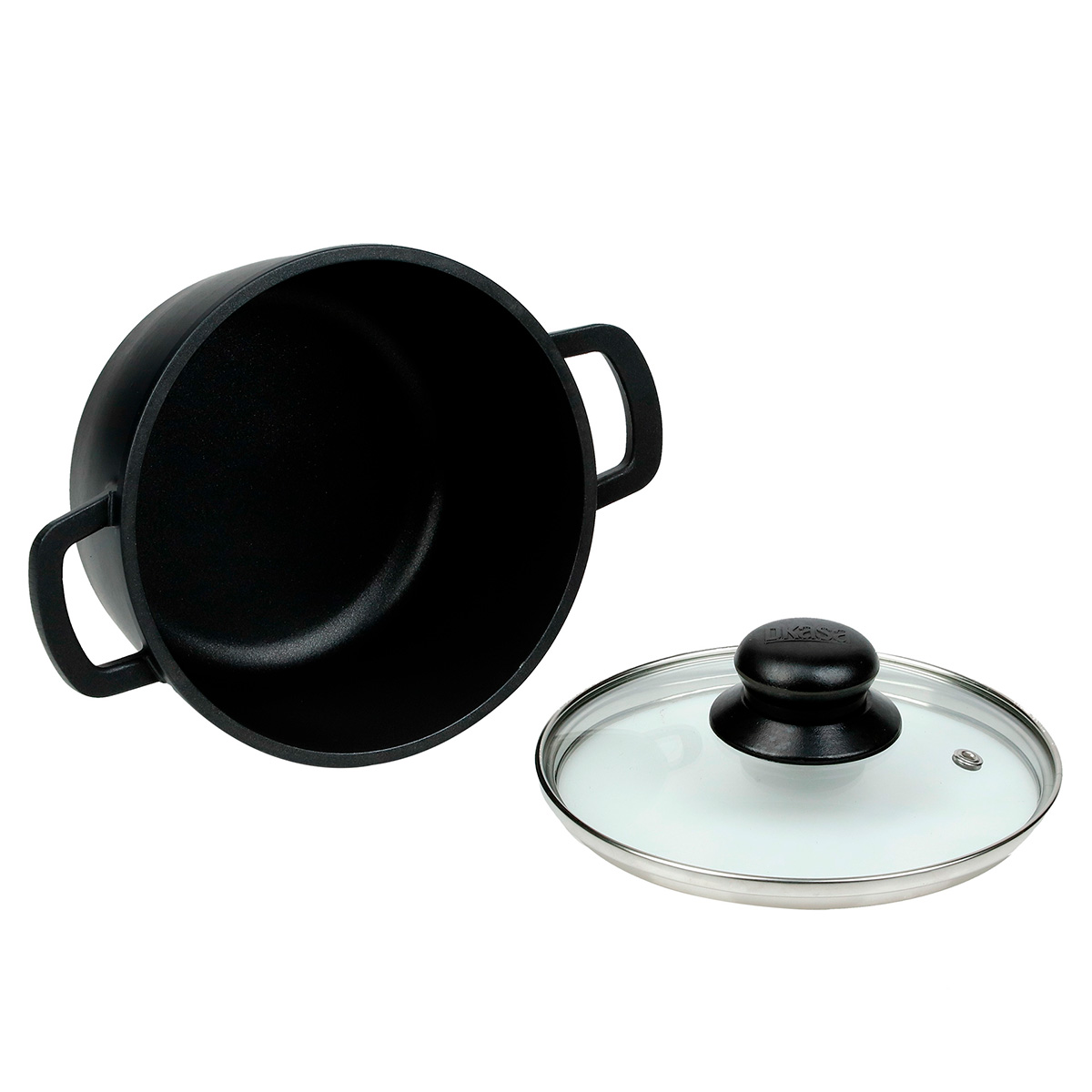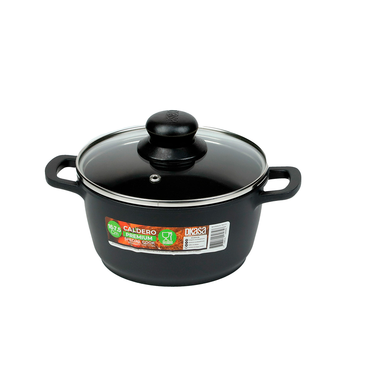 CALDERO INYECTADO 16X7.5 CM ANTIADHERENTE CON TAPA DE VIDRIO